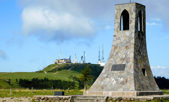 「美しの塔」はコース途中にある美ヶ原高原のシンボル。美ヶ原高原は霧が多く発生するため、遭難する登山者が多くいました。美しの塔はそんな登山者を守るために建てられました。