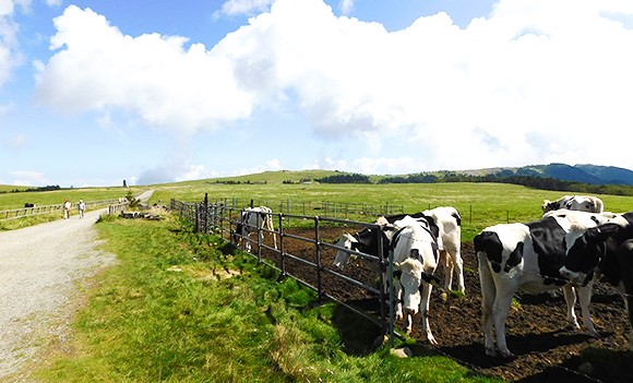 美ヶ原パノラマコースは美ヶ原牧場の中に作られた遊歩道。牛たちがのんびりと過ごす姿を見ることができます。
