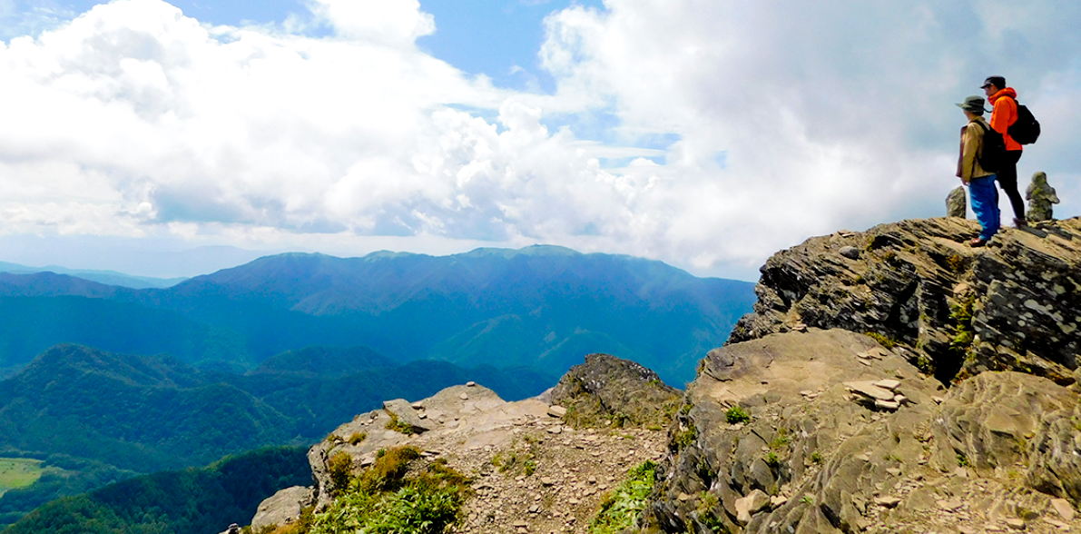 王ヶ鼻はその名の通り、まるで鼻のように岩場から張り出したポイントで、日本百名山のうち約3割をここから一望できます。